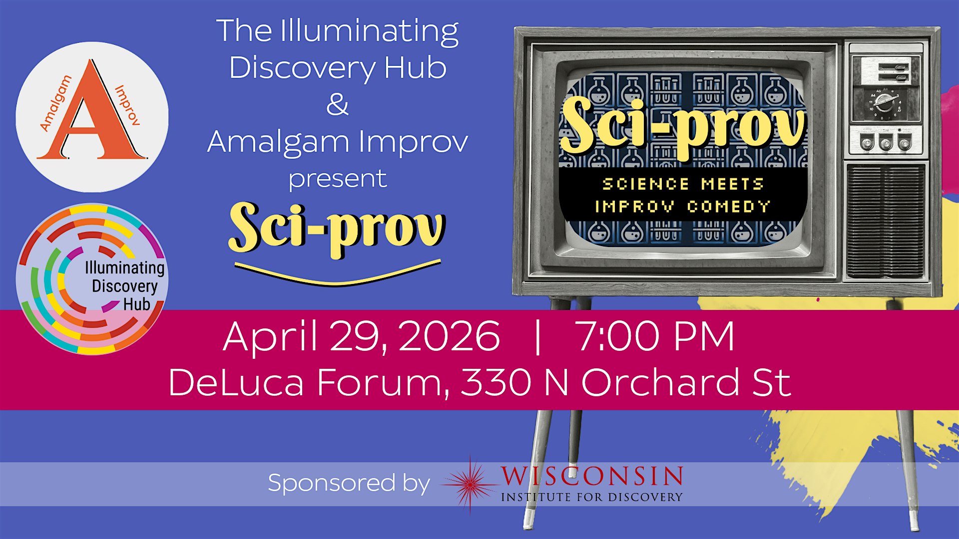 Join the Illuminating Discovery Hub and Amalgam Improv for an evening fusing science and spontaneous improv comedy like no other at Sci-Prov!